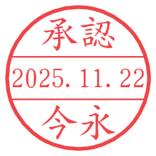 オプションの「電子透かし」をチェックし[生成]すると、見た目には分からないように、UNIXタイムスタンプを識別情報としてPNG形式の日付印に埋め込みます。 日付スタンプメーカーの使い方「部署」「名前」は最大8文字まで入力が可能です。「スタンプの色」を選択し、[生成]ボタン押下で印影画像が更新され、背景を透明に設定したPNG形式とPDF形式の印影画像がリンクからダウンロードできます。 オプションの「電子透かし」は、その性格上日付印ととても相性の良い付加サービスです。 別ページの「タイムスタンプと電子透かし」でも詳しく解説しますが、このオプションを追加することで、日付印が生成された日時に確かにその印が存在していることが証明されます。 ![]() 今永さんの電子印鑑が作れます。社内でのデータ書類閲覧確認用など、認印的な使い方のできる電子印鑑が作れます。 ![]() 古代文字で落款印が作れます。「落款スタンプメーカー」で作品を引き立たせる落款印が作れます。
