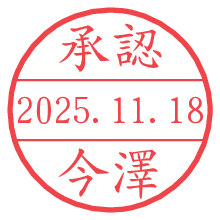 オプションの「電子透かし」をチェックし[生成]すると、見た目には分からないように、UNIXタイムスタンプを識別情報としてPNG形式の日付印に埋め込みます。 日付スタンプメーカーの使い方「部署」「名前」は最大8文字まで入力が可能です。「スタンプの色」を選択し、[生成]ボタン押下で印影画像が更新され、背景を透明に設定したPNG形式とPDF形式の印影画像がリンクからダウンロードできます。 オプションの「電子透かし」は、その性格上日付印ととても相性の良い付加サービスです。 別ページの「タイムスタンプと電子透かし」でも詳しく解説しますが、このオプションを追加することで、日付印が生成された日時に確かにその印が存在していることが証明されます。 ![]() 今澤さんの電子印鑑が作れます。社内でのデータ書類閲覧確認用など、認印的な使い方のできる電子印鑑が作れます。 ![]() 古代文字で落款印が作れます。「落款スタンプメーカー」で作品を引き立たせる落款印が作れます。