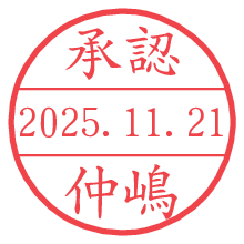 オプションの「電子透かし」をチェックし[生成]すると、見た目には分からないように、UNIXタイムスタンプを識別情報としてPNG形式の日付印に埋め込みます。 日付スタンプメーカーの使い方「部署」「名前」は最大8文字まで入力が可能です。「スタンプの色」を選択し、[生成]ボタン押下で印影画像が更新され、背景を透明に設定したPNG形式とPDF形式の印影画像がリンクからダウンロードできます。 オプションの「電子透かし」は、その性格上日付印ととても相性の良い付加サービスです。 別ページの「タイムスタンプと電子透かし」でも詳しく解説しますが、このオプションを追加することで、日付印が生成された日時に確かにその印が存在していることが証明されます。 ![]() 仲嶋さんの電子印鑑が作れます。社内でのデータ書類閲覧確認用など、認印的な使い方のできる電子印鑑が作れます。 ![]() 古代文字で落款印が作れます。「落款スタンプメーカー」で作品を引き立たせる落款印が作れます。