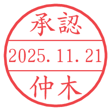 オプションの「電子透かし」をチェックし[生成]すると、見た目には分からないように、UNIXタイムスタンプを識別情報としてPNG形式の日付印に埋め込みます。 日付スタンプメーカーの使い方「部署」「名前」は最大8文字まで入力が可能です。「スタンプの色」を選択し、[生成]ボタン押下で印影画像が更新され、背景を透明に設定したPNG形式とPDF形式の印影画像がリンクからダウンロードできます。 オプションの「電子透かし」は、その性格上日付印ととても相性の良い付加サービスです。 別ページの「タイムスタンプと電子透かし」でも詳しく解説しますが、このオプションを追加することで、日付印が生成された日時に確かにその印が存在していることが証明されます。 ![]() 仲木さんの電子印鑑が作れます。社内でのデータ書類閲覧確認用など、認印的な使い方のできる電子印鑑が作れます。 ![]() 古代文字で落款印が作れます。「落款スタンプメーカー」で作品を引き立たせる落款印が作れます。
