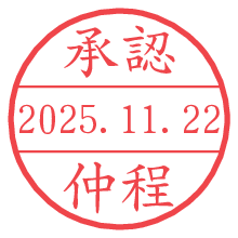 オプションの「電子透かし」をチェックし[生成]すると、見た目には分からないように、UNIXタイムスタンプを識別情報としてPNG形式の日付印に埋め込みます。 日付スタンプメーカーの使い方「部署」「名前」は最大8文字まで入力が可能です。「スタンプの色」を選択し、[生成]ボタン押下で印影画像が更新され、背景を透明に設定したPNG形式とPDF形式の印影画像がリンクからダウンロードできます。 オプションの「電子透かし」は、その性格上日付印ととても相性の良い付加サービスです。 別ページの「タイムスタンプと電子透かし」でも詳しく解説しますが、このオプションを追加することで、日付印が生成された日時に確かにその印が存在していることが証明されます。 ![]() 仲程さんの電子印鑑が作れます。社内でのデータ書類閲覧確認用など、認印的な使い方のできる電子印鑑が作れます。 ![]() 古代文字で落款印が作れます。「落款スタンプメーカー」で作品を引き立たせる落款印が作れます。
