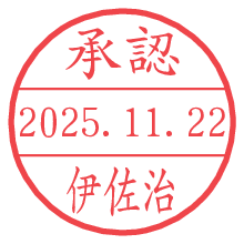 オプションの「電子透かし」をチェックし[生成]すると、見た目には分からないように、UNIXタイムスタンプを識別情報としてPNG形式の日付印に埋め込みます。 日付スタンプメーカーの使い方「部署」「名前」は最大8文字まで入力が可能です。「スタンプの色」を選択し、[生成]ボタン押下で印影画像が更新され、背景を透明に設定したPNG形式とPDF形式の印影画像がリンクからダウンロードできます。 オプションの「電子透かし」は、その性格上日付印ととても相性の良い付加サービスです。 別ページの「タイムスタンプと電子透かし」でも詳しく解説しますが、このオプションを追加することで、日付印が生成された日時に確かにその印が存在していることが証明されます。 ![]() 伊佐治さんの電子印鑑が作れます。社内でのデータ書類閲覧確認用など、認印的な使い方のできる電子印鑑が作れます。 ![]() 古代文字で落款印が作れます。「落款スタンプメーカー」で作品を引き立たせる落款印が作れます。