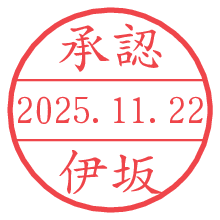 オプションの「電子透かし」をチェックし[生成]すると、見た目には分からないように、UNIXタイムスタンプを識別情報としてPNG形式の日付印に埋め込みます。 日付スタンプメーカーの使い方「部署」「名前」は最大8文字まで入力が可能です。「スタンプの色」を選択し、[生成]ボタン押下で印影画像が更新され、背景を透明に設定したPNG形式とPDF形式の印影画像がリンクからダウンロードできます。 オプションの「電子透かし」は、その性格上日付印ととても相性の良い付加サービスです。 別ページの「タイムスタンプと電子透かし」でも詳しく解説しますが、このオプションを追加することで、日付印が生成された日時に確かにその印が存在していることが証明されます。 ![]() 伊坂さんの電子印鑑が作れます。社内でのデータ書類閲覧確認用など、認印的な使い方のできる電子印鑑が作れます。 ![]() 古代文字で落款印が作れます。「落款スタンプメーカー」で作品を引き立たせる落款印が作れます。