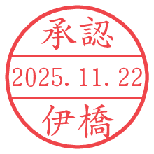 オプションの「電子透かし」をチェックし[生成]すると、見た目には分からないように、UNIXタイムスタンプを識別情報としてPNG形式の日付印に埋め込みます。 日付スタンプメーカーの使い方「部署」「名前」は最大8文字まで入力が可能です。「スタンプの色」を選択し、[生成]ボタン押下で印影画像が更新され、背景を透明に設定したPNG形式とPDF形式の印影画像がリンクからダウンロードできます。 オプションの「電子透かし」は、その性格上日付印ととても相性の良い付加サービスです。 別ページの「タイムスタンプと電子透かし」でも詳しく解説しますが、このオプションを追加することで、日付印が生成された日時に確かにその印が存在していることが証明されます。 ![]() 伊橋さんの電子印鑑が作れます。社内でのデータ書類閲覧確認用など、認印的な使い方のできる電子印鑑が作れます。 ![]() 古代文字で落款印が作れます。「落款スタンプメーカー」で作品を引き立たせる落款印が作れます。