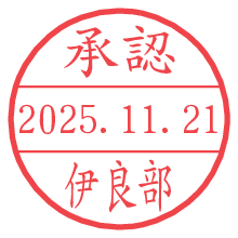オプションの「電子透かし」をチェックし[生成]すると、見た目には分からないように、UNIXタイムスタンプを識別情報としてPNG形式の日付印に埋め込みます。 日付スタンプメーカーの使い方「部署」「名前」は最大8文字まで入力が可能です。「スタンプの色」を選択し、[生成]ボタン押下で印影画像が更新され、背景を透明に設定したPNG形式とPDF形式の印影画像がリンクからダウンロードできます。 オプションの「電子透かし」は、その性格上日付印ととても相性の良い付加サービスです。 別ページの「タイムスタンプと電子透かし」でも詳しく解説しますが、このオプションを追加することで、日付印が生成された日時に確かにその印が存在していることが証明されます。 ![]() 伊良部さんの電子印鑑が作れます。社内でのデータ書類閲覧確認用など、認印的な使い方のできる電子印鑑が作れます。 ![]() 古代文字で落款印が作れます。「落款スタンプメーカー」で作品を引き立たせる落款印が作れます。
