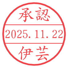 オプションの「電子透かし」をチェックし[生成]すると、見た目には分からないように、UNIXタイムスタンプを識別情報としてPNG形式の日付印に埋め込みます。 日付スタンプメーカーの使い方「部署」「名前」は最大8文字まで入力が可能です。「スタンプの色」を選択し、[生成]ボタン押下で印影画像が更新され、背景を透明に設定したPNG形式とPDF形式の印影画像がリンクからダウンロードできます。 オプションの「電子透かし」は、その性格上日付印ととても相性の良い付加サービスです。 別ページの「タイムスタンプと電子透かし」でも詳しく解説しますが、このオプションを追加することで、日付印が生成された日時に確かにその印が存在していることが証明されます。 ![]() 伊芸さんの電子印鑑が作れます。社内でのデータ書類閲覧確認用など、認印的な使い方のできる電子印鑑が作れます。 ![]() 古代文字で落款印が作れます。「落款スタンプメーカー」で作品を引き立たせる落款印が作れます。