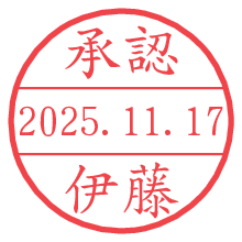 オプションの「電子透かし」をチェックし[生成]すると、見た目には分からないように、UNIXタイムスタンプを識別情報としてPNG形式の日付印に埋め込みます。 日付スタンプメーカーの使い方「部署」「名前」は最大8文字まで入力が可能です。「スタンプの色」を選択し、[生成]ボタン押下で印影画像が更新され、背景を透明に設定したPNG形式とPDF形式の印影画像がリンクからダウンロードできます。 オプションの「電子透かし」は、その性格上日付印ととても相性の良い付加サービスです。 別ページの「タイムスタンプと電子透かし」でも詳しく解説しますが、このオプションを追加することで、日付印が生成された日時に確かにその印が存在していることが証明されます。 ![]() 伊藤さんの電子印鑑が作れます。社内でのデータ書類閲覧確認用など、認印的な使い方のできる電子印鑑が作れます。 ![]() 古代文字で落款印が作れます。「落款スタンプメーカー」で作品を引き立たせる落款印が作れます。