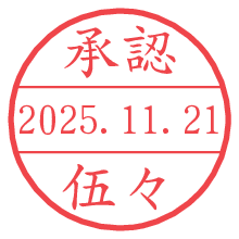 オプションの「電子透かし」をチェックし[生成]すると、見た目には分からないように、UNIXタイムスタンプを識別情報としてPNG形式の日付印に埋め込みます。 日付スタンプメーカーの使い方「部署」「名前」は最大8文字まで入力が可能です。「スタンプの色」を選択し、[生成]ボタン押下で印影画像が更新され、背景を透明に設定したPNG形式とPDF形式の印影画像がリンクからダウンロードできます。 オプションの「電子透かし」は、その性格上日付印ととても相性の良い付加サービスです。 別ページの「タイムスタンプと電子透かし」でも詳しく解説しますが、このオプションを追加することで、日付印が生成された日時に確かにその印が存在していることが証明されます。 ![]() 伍々さんの電子印鑑が作れます。社内でのデータ書類閲覧確認用など、認印的な使い方のできる電子印鑑が作れます。 ![]() 古代文字で落款印が作れます。「落款スタンプメーカー」で作品を引き立たせる落款印が作れます。