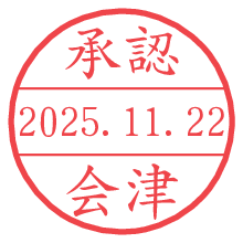 オプションの「電子透かし」をチェックし[生成]すると、見た目には分からないように、UNIXタイムスタンプを識別情報としてPNG形式の日付印に埋め込みます。 日付スタンプメーカーの使い方「部署」「名前」は最大8文字まで入力が可能です。「スタンプの色」を選択し、[生成]ボタン押下で印影画像が更新され、背景を透明に設定したPNG形式とPDF形式の印影画像がリンクからダウンロードできます。 オプションの「電子透かし」は、その性格上日付印ととても相性の良い付加サービスです。 別ページの「タイムスタンプと電子透かし」でも詳しく解説しますが、このオプションを追加することで、日付印が生成された日時に確かにその印が存在していることが証明されます。 ![]() 会津さんの電子印鑑が作れます。社内でのデータ書類閲覧確認用など、認印的な使い方のできる電子印鑑が作れます。 ![]() 古代文字で落款印が作れます。「落款スタンプメーカー」で作品を引き立たせる落款印が作れます。