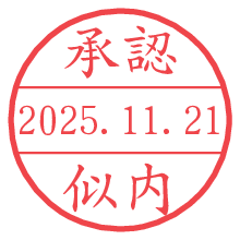 オプションの「電子透かし」をチェックし[生成]すると、見た目には分からないように、UNIXタイムスタンプを識別情報としてPNG形式の日付印に埋め込みます。 日付スタンプメーカーの使い方「部署」「名前」は最大8文字まで入力が可能です。「スタンプの色」を選択し、[生成]ボタン押下で印影画像が更新され、背景を透明に設定したPNG形式とPDF形式の印影画像がリンクからダウンロードできます。 オプションの「電子透かし」は、その性格上日付印ととても相性の良い付加サービスです。 別ページの「タイムスタンプと電子透かし」でも詳しく解説しますが、このオプションを追加することで、日付印が生成された日時に確かにその印が存在していることが証明されます。 ![]() 似内さんの電子印鑑が作れます。社内でのデータ書類閲覧確認用など、認印的な使い方のできる電子印鑑が作れます。 ![]() 古代文字で落款印が作れます。「落款スタンプメーカー」で作品を引き立たせる落款印が作れます。
