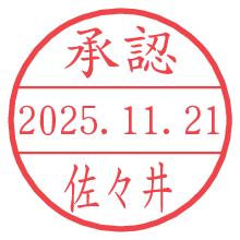 オプションの「電子透かし」をチェックし[生成]すると、見た目には分からないように、UNIXタイムスタンプを識別情報としてPNG形式の日付印に埋め込みます。 日付スタンプメーカーの使い方「部署」「名前」は最大8文字まで入力が可能です。「スタンプの色」を選択し、[生成]ボタン押下で印影画像が更新され、背景を透明に設定したPNG形式とPDF形式の印影画像がリンクからダウンロードできます。 オプションの「電子透かし」は、その性格上日付印ととても相性の良い付加サービスです。 別ページの「タイムスタンプと電子透かし」でも詳しく解説しますが、このオプションを追加することで、日付印が生成された日時に確かにその印が存在していることが証明されます。 ![]() 佐々井さんの電子印鑑が作れます。社内でのデータ書類閲覧確認用など、認印的な使い方のできる電子印鑑が作れます。 ![]() 古代文字で落款印が作れます。「落款スタンプメーカー」で作品を引き立たせる落款印が作れます。