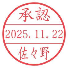 オプションの「電子透かし」をチェックし[生成]すると、見た目には分からないように、UNIXタイムスタンプを識別情報としてPNG形式の日付印に埋め込みます。 日付スタンプメーカーの使い方「部署」「名前」は最大8文字まで入力が可能です。「スタンプの色」を選択し、[生成]ボタン押下で印影画像が更新され、背景を透明に設定したPNG形式とPDF形式の印影画像がリンクからダウンロードできます。 オプションの「電子透かし」は、その性格上日付印ととても相性の良い付加サービスです。 別ページの「タイムスタンプと電子透かし」でも詳しく解説しますが、このオプションを追加することで、日付印が生成された日時に確かにその印が存在していることが証明されます。 ![]() 佐々野さんの電子印鑑が作れます。社内でのデータ書類閲覧確認用など、認印的な使い方のできる電子印鑑が作れます。 ![]() 古代文字で落款印が作れます。「落款スタンプメーカー」で作品を引き立たせる落款印が作れます。