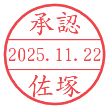 オプションの「電子透かし」をチェックし[生成]すると、見た目には分からないように、UNIXタイムスタンプを識別情報としてPNG形式の日付印に埋め込みます。 日付スタンプメーカーの使い方「部署」「名前」は最大8文字まで入力が可能です。「スタンプの色」を選択し、[生成]ボタン押下で印影画像が更新され、背景を透明に設定したPNG形式とPDF形式の印影画像がリンクからダウンロードできます。 オプションの「電子透かし」は、その性格上日付印ととても相性の良い付加サービスです。 別ページの「タイムスタンプと電子透かし」でも詳しく解説しますが、このオプションを追加することで、日付印が生成された日時に確かにその印が存在していることが証明されます。 ![]() 佐塚さんの電子印鑑が作れます。社内でのデータ書類閲覧確認用など、認印的な使い方のできる電子印鑑が作れます。 ![]() 古代文字で落款印が作れます。「落款スタンプメーカー」で作品を引き立たせる落款印が作れます。