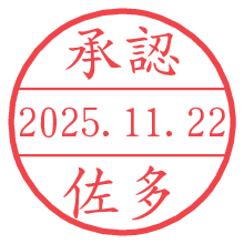 オプションの「電子透かし」をチェックし[生成]すると、見た目には分からないように、UNIXタイムスタンプを識別情報としてPNG形式の日付印に埋め込みます。 日付スタンプメーカーの使い方「部署」「名前」は最大8文字まで入力が可能です。「スタンプの色」を選択し、[生成]ボタン押下で印影画像が更新され、背景を透明に設定したPNG形式とPDF形式の印影画像がリンクからダウンロードできます。 オプションの「電子透かし」は、その性格上日付印ととても相性の良い付加サービスです。 別ページの「タイムスタンプと電子透かし」でも詳しく解説しますが、このオプションを追加することで、日付印が生成された日時に確かにその印が存在していることが証明されます。 ![]() 佐多さんの電子印鑑が作れます。社内でのデータ書類閲覧確認用など、認印的な使い方のできる電子印鑑が作れます。 ![]() 古代文字で落款印が作れます。「落款スタンプメーカー」で作品を引き立たせる落款印が作れます。