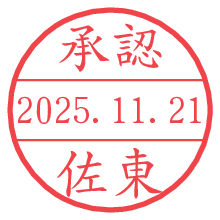 オプションの「電子透かし」をチェックし[生成]すると、見た目には分からないように、UNIXタイムスタンプを識別情報としてPNG形式の日付印に埋め込みます。 日付スタンプメーカーの使い方「部署」「名前」は最大8文字まで入力が可能です。「スタンプの色」を選択し、[生成]ボタン押下で印影画像が更新され、背景を透明に設定したPNG形式とPDF形式の印影画像がリンクからダウンロードできます。 オプションの「電子透かし」は、その性格上日付印ととても相性の良い付加サービスです。 別ページの「タイムスタンプと電子透かし」でも詳しく解説しますが、このオプションを追加することで、日付印が生成された日時に確かにその印が存在していることが証明されます。 ![]() 佐東さんの電子印鑑が作れます。社内でのデータ書類閲覧確認用など、認印的な使い方のできる電子印鑑が作れます。 ![]() 古代文字で落款印が作れます。「落款スタンプメーカー」で作品を引き立たせる落款印が作れます。
