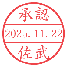 オプションの「電子透かし」をチェックし[生成]すると、見た目には分からないように、UNIXタイムスタンプを識別情報としてPNG形式の日付印に埋め込みます。 日付スタンプメーカーの使い方「部署」「名前」は最大8文字まで入力が可能です。「スタンプの色」を選択し、[生成]ボタン押下で印影画像が更新され、背景を透明に設定したPNG形式とPDF形式の印影画像がリンクからダウンロードできます。 オプションの「電子透かし」は、その性格上日付印ととても相性の良い付加サービスです。 別ページの「タイムスタンプと電子透かし」でも詳しく解説しますが、このオプションを追加することで、日付印が生成された日時に確かにその印が存在していることが証明されます。 ![]() 佐武さんの電子印鑑が作れます。社内でのデータ書類閲覧確認用など、認印的な使い方のできる電子印鑑が作れます。 ![]() 古代文字で落款印が作れます。「落款スタンプメーカー」で作品を引き立たせる落款印が作れます。