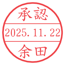 オプションの「電子透かし」をチェックし[生成]すると、見た目には分からないように、UNIXタイムスタンプを識別情報としてPNG形式の日付印に埋め込みます。 日付スタンプメーカーの使い方「部署」「名前」は最大8文字まで入力が可能です。「スタンプの色」を選択し、[生成]ボタン押下で印影画像が更新され、背景を透明に設定したPNG形式とPDF形式の印影画像がリンクからダウンロードできます。 オプションの「電子透かし」は、その性格上日付印ととても相性の良い付加サービスです。 別ページの「タイムスタンプと電子透かし」でも詳しく解説しますが、このオプションを追加することで、日付印が生成された日時に確かにその印が存在していることが証明されます。 ![]() 余田さんの電子印鑑が作れます。社内でのデータ書類閲覧確認用など、認印的な使い方のできる電子印鑑が作れます。 ![]() 古代文字で落款印が作れます。「落款スタンプメーカー」で作品を引き立たせる落款印が作れます。
