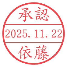 オプションの「電子透かし」をチェックし[生成]すると、見た目には分からないように、UNIXタイムスタンプを識別情報としてPNG形式の日付印に埋め込みます。 日付スタンプメーカーの使い方「部署」「名前」は最大8文字まで入力が可能です。「スタンプの色」を選択し、[生成]ボタン押下で印影画像が更新され、背景を透明に設定したPNG形式とPDF形式の印影画像がリンクからダウンロードできます。 オプションの「電子透かし」は、その性格上日付印ととても相性の良い付加サービスです。 別ページの「タイムスタンプと電子透かし」でも詳しく解説しますが、このオプションを追加することで、日付印が生成された日時に確かにその印が存在していることが証明されます。 ![]() 依藤さんの電子印鑑が作れます。社内でのデータ書類閲覧確認用など、認印的な使い方のできる電子印鑑が作れます。 ![]() 古代文字で落款印が作れます。「落款スタンプメーカー」で作品を引き立たせる落款印が作れます。