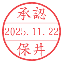 オプションの「電子透かし」をチェックし[生成]すると、見た目には分からないように、UNIXタイムスタンプを識別情報としてPNG形式の日付印に埋め込みます。 日付スタンプメーカーの使い方「部署」「名前」は最大8文字まで入力が可能です。「スタンプの色」を選択し、[生成]ボタン押下で印影画像が更新され、背景を透明に設定したPNG形式とPDF形式の印影画像がリンクからダウンロードできます。 オプションの「電子透かし」は、その性格上日付印ととても相性の良い付加サービスです。 別ページの「タイムスタンプと電子透かし」でも詳しく解説しますが、このオプションを追加することで、日付印が生成された日時に確かにその印が存在していることが証明されます。 ![]() 保井さんの電子印鑑が作れます。社内でのデータ書類閲覧確認用など、認印的な使い方のできる電子印鑑が作れます。 ![]() 古代文字で落款印が作れます。「落款スタンプメーカー」で作品を引き立たせる落款印が作れます。
