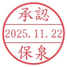 オプションの「電子透かし」をチェックし[生成]すると、見た目には分からないように、UNIXタイムスタンプを識別情報としてPNG形式の日付印に埋め込みます。 日付スタンプメーカーの使い方「部署」「名前」は最大8文字まで入力が可能です。「スタンプの色」を選択し、[生成]ボタン押下で印影画像が更新され、背景を透明に設定したPNG形式とPDF形式の印影画像がリンクからダウンロードできます。 オプションの「電子透かし」は、その性格上日付印ととても相性の良い付加サービスです。 別ページの「タイムスタンプと電子透かし」でも詳しく解説しますが、このオプションを追加することで、日付印が生成された日時に確かにその印が存在していることが証明されます。 ![]() 保泉さんの電子印鑑が作れます。社内でのデータ書類閲覧確認用など、認印的な使い方のできる電子印鑑が作れます。 ![]() 古代文字で落款印が作れます。「落款スタンプメーカー」で作品を引き立たせる落款印が作れます。