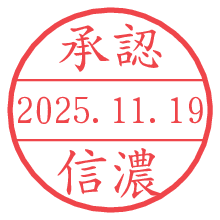 オプションの「電子透かし」をチェックし[生成]すると、見た目には分からないように、UNIXタイムスタンプを識別情報としてPNG形式の日付印に埋め込みます。 日付スタンプメーカーの使い方「部署」「名前」は最大8文字まで入力が可能です。「スタンプの色」を選択し、[生成]ボタン押下で印影画像が更新され、背景を透明に設定したPNG形式とPDF形式の印影画像がリンクからダウンロードできます。 オプションの「電子透かし」は、その性格上日付印ととても相性の良い付加サービスです。 別ページの「タイムスタンプと電子透かし」でも詳しく解説しますが、このオプションを追加することで、日付印が生成された日時に確かにその印が存在していることが証明されます。 ![]() 信濃さんの電子印鑑が作れます。社内でのデータ書類閲覧確認用など、認印的な使い方のできる電子印鑑が作れます。 ![]() 古代文字で落款印が作れます。「落款スタンプメーカー」で作品を引き立たせる落款印が作れます。