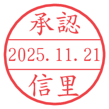 オプションの「電子透かし」をチェックし[生成]すると、見た目には分からないように、UNIXタイムスタンプを識別情報としてPNG形式の日付印に埋め込みます。 日付スタンプメーカーの使い方「部署」「名前」は最大8文字まで入力が可能です。「スタンプの色」を選択し、[生成]ボタン押下で印影画像が更新され、背景を透明に設定したPNG形式とPDF形式の印影画像がリンクからダウンロードできます。 オプションの「電子透かし」は、その性格上日付印ととても相性の良い付加サービスです。 別ページの「タイムスタンプと電子透かし」でも詳しく解説しますが、このオプションを追加することで、日付印が生成された日時に確かにその印が存在していることが証明されます。 ![]() 信里さんの電子印鑑が作れます。社内でのデータ書類閲覧確認用など、認印的な使い方のできる電子印鑑が作れます。 ![]() 古代文字で落款印が作れます。「落款スタンプメーカー」で作品を引き立たせる落款印が作れます。