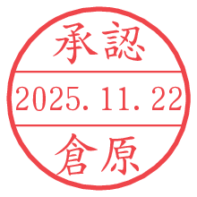 オプションの「電子透かし」をチェックし[生成]すると、見た目には分からないように、UNIXタイムスタンプを識別情報としてPNG形式の日付印に埋め込みます。 日付スタンプメーカーの使い方「部署」「名前」は最大8文字まで入力が可能です。「スタンプの色」を選択し、[生成]ボタン押下で印影画像が更新され、背景を透明に設定したPNG形式とPDF形式の印影画像がリンクからダウンロードできます。 オプションの「電子透かし」は、その性格上日付印ととても相性の良い付加サービスです。 別ページの「タイムスタンプと電子透かし」でも詳しく解説しますが、このオプションを追加することで、日付印が生成された日時に確かにその印が存在していることが証明されます。 ![]() 倉原さんの電子印鑑が作れます。社内でのデータ書類閲覧確認用など、認印的な使い方のできる電子印鑑が作れます。 ![]() 古代文字で落款印が作れます。「落款スタンプメーカー」で作品を引き立たせる落款印が作れます。