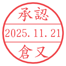 オプションの「電子透かし」をチェックし[生成]すると、見た目には分からないように、UNIXタイムスタンプを識別情報としてPNG形式の日付印に埋め込みます。 日付スタンプメーカーの使い方「部署」「名前」は最大8文字まで入力が可能です。「スタンプの色」を選択し、[生成]ボタン押下で印影画像が更新され、背景を透明に設定したPNG形式とPDF形式の印影画像がリンクからダウンロードできます。 オプションの「電子透かし」は、その性格上日付印ととても相性の良い付加サービスです。 別ページの「タイムスタンプと電子透かし」でも詳しく解説しますが、このオプションを追加することで、日付印が生成された日時に確かにその印が存在していることが証明されます。 ![]() 倉又さんの電子印鑑が作れます。社内でのデータ書類閲覧確認用など、認印的な使い方のできる電子印鑑が作れます。 ![]() 古代文字で落款印が作れます。「落款スタンプメーカー」で作品を引き立たせる落款印が作れます。