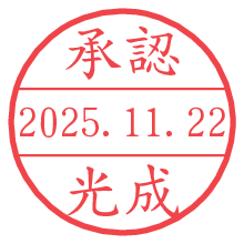 オプションの「電子透かし」をチェックし[生成]すると、見た目には分からないように、UNIXタイムスタンプを識別情報としてPNG形式の日付印に埋め込みます。 日付スタンプメーカーの使い方「部署」「名前」は最大8文字まで入力が可能です。「スタンプの色」を選択し、[生成]ボタン押下で印影画像が更新され、背景を透明に設定したPNG形式とPDF形式の印影画像がリンクからダウンロードできます。 オプションの「電子透かし」は、その性格上日付印ととても相性の良い付加サービスです。 別ページの「タイムスタンプと電子透かし」でも詳しく解説しますが、このオプションを追加することで、日付印が生成された日時に確かにその印が存在していることが証明されます。 ![]() 光成さんの電子印鑑が作れます。社内でのデータ書類閲覧確認用など、認印的な使い方のできる電子印鑑が作れます。 ![]() 古代文字で落款印が作れます。「落款スタンプメーカー」で作品を引き立たせる落款印が作れます。