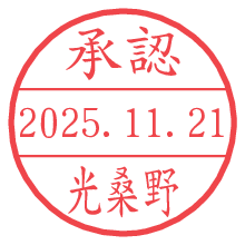 オプションの「電子透かし」をチェックし[生成]すると、見た目には分からないように、UNIXタイムスタンプを識別情報としてPNG形式の日付印に埋め込みます。 日付スタンプメーカーの使い方「部署」「名前」は最大8文字まで入力が可能です。「スタンプの色」を選択し、[生成]ボタン押下で印影画像が更新され、背景を透明に設定したPNG形式とPDF形式の印影画像がリンクからダウンロードできます。 オプションの「電子透かし」は、その性格上日付印ととても相性の良い付加サービスです。 別ページの「タイムスタンプと電子透かし」でも詳しく解説しますが、このオプションを追加することで、日付印が生成された日時に確かにその印が存在していることが証明されます。 ![]() 光桑野さんの電子印鑑が作れます。社内でのデータ書類閲覧確認用など、認印的な使い方のできる電子印鑑が作れます。 ![]() 古代文字で落款印が作れます。「落款スタンプメーカー」で作品を引き立たせる落款印が作れます。