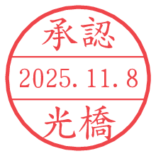 オプションの「電子透かし」をチェックし[生成]すると、見た目には分からないように、UNIXタイムスタンプを識別情報としてPNG形式の日付印に埋め込みます。 日付スタンプメーカーの使い方「部署」「名前」は最大8文字まで入力が可能です。「スタンプの色」を選択し、[生成]ボタン押下で印影画像が更新され、背景を透明に設定したPNG形式とPDF形式の印影画像がリンクからダウンロードできます。 オプションの「電子透かし」は、その性格上日付印ととても相性の良い付加サービスです。 別ページの「タイムスタンプと電子透かし」でも詳しく解説しますが、このオプションを追加することで、日付印が生成された日時に確かにその印が存在していることが証明されます。 ![]() 光橋さんの電子印鑑が作れます。社内でのデータ書類閲覧確認用など、認印的な使い方のできる電子印鑑が作れます。 ![]() 古代文字で落款印が作れます。「落款スタンプメーカー」で作品を引き立たせる落款印が作れます。