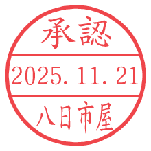 オプションの「電子透かし」をチェックし[生成]すると、見た目には分からないように、UNIXタイムスタンプを識別情報としてPNG形式の日付印に埋め込みます。 日付スタンプメーカーの使い方「部署」「名前」は最大8文字まで入力が可能です。「スタンプの色」を選択し、[生成]ボタン押下で印影画像が更新され、背景を透明に設定したPNG形式とPDF形式の印影画像がリンクからダウンロードできます。 オプションの「電子透かし」は、その性格上日付印ととても相性の良い付加サービスです。 別ページの「タイムスタンプと電子透かし」でも詳しく解説しますが、このオプションを追加することで、日付印が生成された日時に確かにその印が存在していることが証明されます。 ![]() 八日市屋さんの電子印鑑が作れます。社内でのデータ書類閲覧確認用など、認印的な使い方のできる電子印鑑が作れます。 ![]() 古代文字で落款印が作れます。「落款スタンプメーカー」で作品を引き立たせる落款印が作れます。