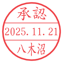 オプションの「電子透かし」をチェックし[生成]すると、見た目には分からないように、UNIXタイムスタンプを識別情報としてPNG形式の日付印に埋め込みます。 日付スタンプメーカーの使い方「部署」「名前」は最大8文字まで入力が可能です。「スタンプの色」を選択し、[生成]ボタン押下で印影画像が更新され、背景を透明に設定したPNG形式とPDF形式の印影画像がリンクからダウンロードできます。 オプションの「電子透かし」は、その性格上日付印ととても相性の良い付加サービスです。 別ページの「タイムスタンプと電子透かし」でも詳しく解説しますが、このオプションを追加することで、日付印が生成された日時に確かにその印が存在していることが証明されます。 ![]() 八木沼さんの電子印鑑が作れます。社内でのデータ書類閲覧確認用など、認印的な使い方のできる電子印鑑が作れます。 ![]() 古代文字で落款印が作れます。「落款スタンプメーカー」で作品を引き立たせる落款印が作れます。