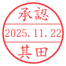 オプションの「電子透かし」をチェックし[生成]すると、見た目には分からないように、UNIXタイムスタンプを識別情報としてPNG形式の日付印に埋め込みます。 日付スタンプメーカーの使い方「部署」「名前」は最大8文字まで入力が可能です。「スタンプの色」を選択し、[生成]ボタン押下で印影画像が更新され、背景を透明に設定したPNG形式とPDF形式の印影画像がリンクからダウンロードできます。 オプションの「電子透かし」は、その性格上日付印ととても相性の良い付加サービスです。 別ページの「タイムスタンプと電子透かし」でも詳しく解説しますが、このオプションを追加することで、日付印が生成された日時に確かにその印が存在していることが証明されます。 ![]() 其田さんの電子印鑑が作れます。社内でのデータ書類閲覧確認用など、認印的な使い方のできる電子印鑑が作れます。 ![]() 古代文字で落款印が作れます。「落款スタンプメーカー」で作品を引き立たせる落款印が作れます。