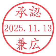 オプションの「電子透かし」をチェックし[生成]すると、見た目には分からないように、UNIXタイムスタンプを識別情報としてPNG形式の日付印に埋め込みます。 日付スタンプメーカーの使い方「部署」「名前」は最大8文字まで入力が可能です。「スタンプの色」を選択し、[生成]ボタン押下で印影画像が更新され、背景を透明に設定したPNG形式とPDF形式の印影画像がリンクからダウンロードできます。 オプションの「電子透かし」は、その性格上日付印ととても相性の良い付加サービスです。 別ページの「タイムスタンプと電子透かし」でも詳しく解説しますが、このオプションを追加することで、日付印が生成された日時に確かにその印が存在していることが証明されます。 ![]() 兼広さんの電子印鑑が作れます。社内でのデータ書類閲覧確認用など、認印的な使い方のできる電子印鑑が作れます。 ![]() 古代文字で落款印が作れます。「落款スタンプメーカー」で作品を引き立たせる落款印が作れます。