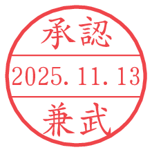 オプションの「電子透かし」をチェックし[生成]すると、見た目には分からないように、UNIXタイムスタンプを識別情報としてPNG形式の日付印に埋め込みます。 日付スタンプメーカーの使い方「部署」「名前」は最大8文字まで入力が可能です。「スタンプの色」を選択し、[生成]ボタン押下で印影画像が更新され、背景を透明に設定したPNG形式とPDF形式の印影画像がリンクからダウンロードできます。 オプションの「電子透かし」は、その性格上日付印ととても相性の良い付加サービスです。 別ページの「タイムスタンプと電子透かし」でも詳しく解説しますが、このオプションを追加することで、日付印が生成された日時に確かにその印が存在していることが証明されます。 ![]() 兼武さんの電子印鑑が作れます。社内でのデータ書類閲覧確認用など、認印的な使い方のできる電子印鑑が作れます。 ![]() 古代文字で落款印が作れます。「落款スタンプメーカー」で作品を引き立たせる落款印が作れます。