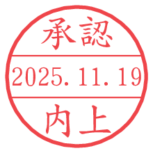 オプションの「電子透かし」をチェックし[生成]すると、見た目には分からないように、UNIXタイムスタンプを識別情報としてPNG形式の日付印に埋め込みます。 日付スタンプメーカーの使い方「部署」「名前」は最大8文字まで入力が可能です。「スタンプの色」を選択し、[生成]ボタン押下で印影画像が更新され、背景を透明に設定したPNG形式とPDF形式の印影画像がリンクからダウンロードできます。 オプションの「電子透かし」は、その性格上日付印ととても相性の良い付加サービスです。 別ページの「タイムスタンプと電子透かし」でも詳しく解説しますが、このオプションを追加することで、日付印が生成された日時に確かにその印が存在していることが証明されます。 ![]() 内上さんの電子印鑑が作れます。社内でのデータ書類閲覧確認用など、認印的な使い方のできる電子印鑑が作れます。 ![]() 古代文字で落款印が作れます。「落款スタンプメーカー」で作品を引き立たせる落款印が作れます。