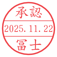 オプションの「電子透かし」をチェックし[生成]すると、見た目には分からないように、UNIXタイムスタンプを識別情報としてPNG形式の日付印に埋め込みます。 日付スタンプメーカーの使い方「部署」「名前」は最大8文字まで入力が可能です。「スタンプの色」を選択し、[生成]ボタン押下で印影画像が更新され、背景を透明に設定したPNG形式とPDF形式の印影画像がリンクからダウンロードできます。 オプションの「電子透かし」は、その性格上日付印ととても相性の良い付加サービスです。 別ページの「タイムスタンプと電子透かし」でも詳しく解説しますが、このオプションを追加することで、日付印が生成された日時に確かにその印が存在していることが証明されます。 ![]() 冨士さんの電子印鑑が作れます。社内でのデータ書類閲覧確認用など、認印的な使い方のできる電子印鑑が作れます。 ![]() 古代文字で落款印が作れます。「落款スタンプメーカー」で作品を引き立たせる落款印が作れます。