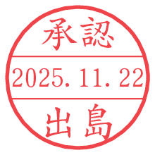 オプションの「電子透かし」をチェックし[生成]すると、見た目には分からないように、UNIXタイムスタンプを識別情報としてPNG形式の日付印に埋め込みます。 日付スタンプメーカーの使い方「部署」「名前」は最大8文字まで入力が可能です。「スタンプの色」を選択し、[生成]ボタン押下で印影画像が更新され、背景を透明に設定したPNG形式とPDF形式の印影画像がリンクからダウンロードできます。 オプションの「電子透かし」は、その性格上日付印ととても相性の良い付加サービスです。 別ページの「タイムスタンプと電子透かし」でも詳しく解説しますが、このオプションを追加することで、日付印が生成された日時に確かにその印が存在していることが証明されます。 ![]() 出島さんの電子印鑑が作れます。社内でのデータ書類閲覧確認用など、認印的な使い方のできる電子印鑑が作れます。 ![]() 古代文字で落款印が作れます。「落款スタンプメーカー」で作品を引き立たせる落款印が作れます。