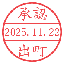 オプションの「電子透かし」をチェックし[生成]すると、見た目には分からないように、UNIXタイムスタンプを識別情報としてPNG形式の日付印に埋め込みます。 日付スタンプメーカーの使い方「部署」「名前」は最大8文字まで入力が可能です。「スタンプの色」を選択し、[生成]ボタン押下で印影画像が更新され、背景を透明に設定したPNG形式とPDF形式の印影画像がリンクからダウンロードできます。 オプションの「電子透かし」は、その性格上日付印ととても相性の良い付加サービスです。 別ページの「タイムスタンプと電子透かし」でも詳しく解説しますが、このオプションを追加することで、日付印が生成された日時に確かにその印が存在していることが証明されます。 ![]() 出町さんの電子印鑑が作れます。社内でのデータ書類閲覧確認用など、認印的な使い方のできる電子印鑑が作れます。 ![]() 古代文字で落款印が作れます。「落款スタンプメーカー」で作品を引き立たせる落款印が作れます。