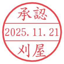 オプションの「電子透かし」をチェックし[生成]すると、見た目には分からないように、UNIXタイムスタンプを識別情報としてPNG形式の日付印に埋め込みます。 日付スタンプメーカーの使い方「部署」「名前」は最大8文字まで入力が可能です。「スタンプの色」を選択し、[生成]ボタン押下で印影画像が更新され、背景を透明に設定したPNG形式とPDF形式の印影画像がリンクからダウンロードできます。 オプションの「電子透かし」は、その性格上日付印ととても相性の良い付加サービスです。 別ページの「タイムスタンプと電子透かし」でも詳しく解説しますが、このオプションを追加することで、日付印が生成された日時に確かにその印が存在していることが証明されます。 ![]() 刈屋さんの電子印鑑が作れます。社内でのデータ書類閲覧確認用など、認印的な使い方のできる電子印鑑が作れます。 ![]() 古代文字で落款印が作れます。「落款スタンプメーカー」で作品を引き立たせる落款印が作れます。