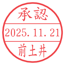 オプションの「電子透かし」をチェックし[生成]すると、見た目には分からないように、UNIXタイムスタンプを識別情報としてPNG形式の日付印に埋め込みます。 日付スタンプメーカーの使い方「部署」「名前」は最大8文字まで入力が可能です。「スタンプの色」を選択し、[生成]ボタン押下で印影画像が更新され、背景を透明に設定したPNG形式とPDF形式の印影画像がリンクからダウンロードできます。 オプションの「電子透かし」は、その性格上日付印ととても相性の良い付加サービスです。 別ページの「タイムスタンプと電子透かし」でも詳しく解説しますが、このオプションを追加することで、日付印が生成された日時に確かにその印が存在していることが証明されます。 ![]() 前土井さんの電子印鑑が作れます。社内でのデータ書類閲覧確認用など、認印的な使い方のできる電子印鑑が作れます。 ![]() 古代文字で落款印が作れます。「落款スタンプメーカー」で作品を引き立たせる落款印が作れます。