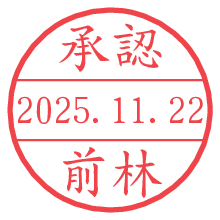 オプションの「電子透かし」をチェックし[生成]すると、見た目には分からないように、UNIXタイムスタンプを識別情報としてPNG形式の日付印に埋め込みます。 日付スタンプメーカーの使い方「部署」「名前」は最大8文字まで入力が可能です。「スタンプの色」を選択し、[生成]ボタン押下で印影画像が更新され、背景を透明に設定したPNG形式とPDF形式の印影画像がリンクからダウンロードできます。 オプションの「電子透かし」は、その性格上日付印ととても相性の良い付加サービスです。 別ページの「タイムスタンプと電子透かし」でも詳しく解説しますが、このオプションを追加することで、日付印が生成された日時に確かにその印が存在していることが証明されます。 ![]() 前林さんの電子印鑑が作れます。社内でのデータ書類閲覧確認用など、認印的な使い方のできる電子印鑑が作れます。 ![]() 古代文字で落款印が作れます。「落款スタンプメーカー」で作品を引き立たせる落款印が作れます。