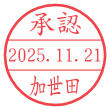 オプションの「電子透かし」をチェックし[生成]すると、見た目には分からないように、UNIXタイムスタンプを識別情報としてPNG形式の日付印に埋め込みます。 日付スタンプメーカーの使い方「部署」「名前」は最大8文字まで入力が可能です。「スタンプの色」を選択し、[生成]ボタン押下で印影画像が更新され、背景を透明に設定したPNG形式とPDF形式の印影画像がリンクからダウンロードできます。 オプションの「電子透かし」は、その性格上日付印ととても相性の良い付加サービスです。 別ページの「タイムスタンプと電子透かし」でも詳しく解説しますが、このオプションを追加することで、日付印が生成された日時に確かにその印が存在していることが証明されます。 ![]() 加世田さんの電子印鑑が作れます。社内でのデータ書類閲覧確認用など、認印的な使い方のできる電子印鑑が作れます。 ![]() 古代文字で落款印が作れます。「落款スタンプメーカー」で作品を引き立たせる落款印が作れます。