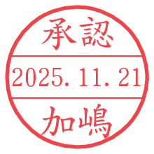 オプションの「電子透かし」をチェックし[生成]すると、見た目には分からないように、UNIXタイムスタンプを識別情報としてPNG形式の日付印に埋め込みます。 日付スタンプメーカーの使い方「部署」「名前」は最大8文字まで入力が可能です。「スタンプの色」を選択し、[生成]ボタン押下で印影画像が更新され、背景を透明に設定したPNG形式とPDF形式の印影画像がリンクからダウンロードできます。 オプションの「電子透かし」は、その性格上日付印ととても相性の良い付加サービスです。 別ページの「タイムスタンプと電子透かし」でも詳しく解説しますが、このオプションを追加することで、日付印が生成された日時に確かにその印が存在していることが証明されます。 ![]() 加嶋さんの電子印鑑が作れます。社内でのデータ書類閲覧確認用など、認印的な使い方のできる電子印鑑が作れます。 ![]() 古代文字で落款印が作れます。「落款スタンプメーカー」で作品を引き立たせる落款印が作れます。