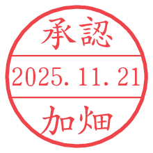 オプションの「電子透かし」をチェックし[生成]すると、見た目には分からないように、UNIXタイムスタンプを識別情報としてPNG形式の日付印に埋め込みます。 日付スタンプメーカーの使い方「部署」「名前」は最大8文字まで入力が可能です。「スタンプの色」を選択し、[生成]ボタン押下で印影画像が更新され、背景を透明に設定したPNG形式とPDF形式の印影画像がリンクからダウンロードできます。 オプションの「電子透かし」は、その性格上日付印ととても相性の良い付加サービスです。 別ページの「タイムスタンプと電子透かし」でも詳しく解説しますが、このオプションを追加することで、日付印が生成された日時に確かにその印が存在していることが証明されます。 ![]() 加畑さんの電子印鑑が作れます。社内でのデータ書類閲覧確認用など、認印的な使い方のできる電子印鑑が作れます。 ![]() 古代文字で落款印が作れます。「落款スタンプメーカー」で作品を引き立たせる落款印が作れます。