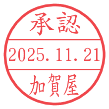 オプションの「電子透かし」をチェックし[生成]すると、見た目には分からないように、UNIXタイムスタンプを識別情報としてPNG形式の日付印に埋め込みます。 日付スタンプメーカーの使い方「部署」「名前」は最大8文字まで入力が可能です。「スタンプの色」を選択し、[生成]ボタン押下で印影画像が更新され、背景を透明に設定したPNG形式とPDF形式の印影画像がリンクからダウンロードできます。 オプションの「電子透かし」は、その性格上日付印ととても相性の良い付加サービスです。 別ページの「タイムスタンプと電子透かし」でも詳しく解説しますが、このオプションを追加することで、日付印が生成された日時に確かにその印が存在していることが証明されます。 ![]() 加賀屋さんの電子印鑑が作れます。社内でのデータ書類閲覧確認用など、認印的な使い方のできる電子印鑑が作れます。 ![]() 古代文字で落款印が作れます。「落款スタンプメーカー」で作品を引き立たせる落款印が作れます。