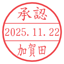 オプションの「電子透かし」をチェックし[生成]すると、見た目には分からないように、UNIXタイムスタンプを識別情報としてPNG形式の日付印に埋め込みます。 日付スタンプメーカーの使い方「部署」「名前」は最大8文字まで入力が可能です。「スタンプの色」を選択し、[生成]ボタン押下で印影画像が更新され、背景を透明に設定したPNG形式とPDF形式の印影画像がリンクからダウンロードできます。 オプションの「電子透かし」は、その性格上日付印ととても相性の良い付加サービスです。 別ページの「タイムスタンプと電子透かし」でも詳しく解説しますが、このオプションを追加することで、日付印が生成された日時に確かにその印が存在していることが証明されます。 ![]() 加賀田さんの電子印鑑が作れます。社内でのデータ書類閲覧確認用など、認印的な使い方のできる電子印鑑が作れます。 ![]() 古代文字で落款印が作れます。「落款スタンプメーカー」で作品を引き立たせる落款印が作れます。