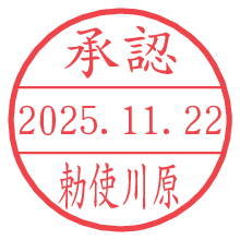 オプションの「電子透かし」をチェックし[生成]すると、見た目には分からないように、UNIXタイムスタンプを識別情報としてPNG形式の日付印に埋め込みます。 日付スタンプメーカーの使い方「部署」「名前」は最大8文字まで入力が可能です。「スタンプの色」を選択し、[生成]ボタン押下で印影画像が更新され、背景を透明に設定したPNG形式とPDF形式の印影画像がリンクからダウンロードできます。 オプションの「電子透かし」は、その性格上日付印ととても相性の良い付加サービスです。 別ページの「タイムスタンプと電子透かし」でも詳しく解説しますが、このオプションを追加することで、日付印が生成された日時に確かにその印が存在していることが証明されます。 ![]() 勅使川原さんの電子印鑑が作れます。社内でのデータ書類閲覧確認用など、認印的な使い方のできる電子印鑑が作れます。 ![]() 古代文字で落款印が作れます。「落款スタンプメーカー」で作品を引き立たせる落款印が作れます。