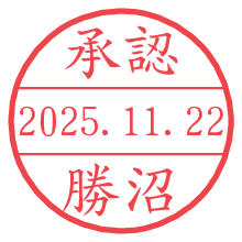 オプションの「電子透かし」をチェックし[生成]すると、見た目には分からないように、UNIXタイムスタンプを識別情報としてPNG形式の日付印に埋め込みます。 日付スタンプメーカーの使い方「部署」「名前」は最大8文字まで入力が可能です。「スタンプの色」を選択し、[生成]ボタン押下で印影画像が更新され、背景を透明に設定したPNG形式とPDF形式の印影画像がリンクからダウンロードできます。 オプションの「電子透かし」は、その性格上日付印ととても相性の良い付加サービスです。 別ページの「タイムスタンプと電子透かし」でも詳しく解説しますが、このオプションを追加することで、日付印が生成された日時に確かにその印が存在していることが証明されます。 ![]() 勝沼さんの電子印鑑が作れます。社内でのデータ書類閲覧確認用など、認印的な使い方のできる電子印鑑が作れます。 ![]() 古代文字で落款印が作れます。「落款スタンプメーカー」で作品を引き立たせる落款印が作れます。